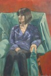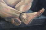 2016Liggend vrouwelijk naakt op rode doek met grijze achtergrond